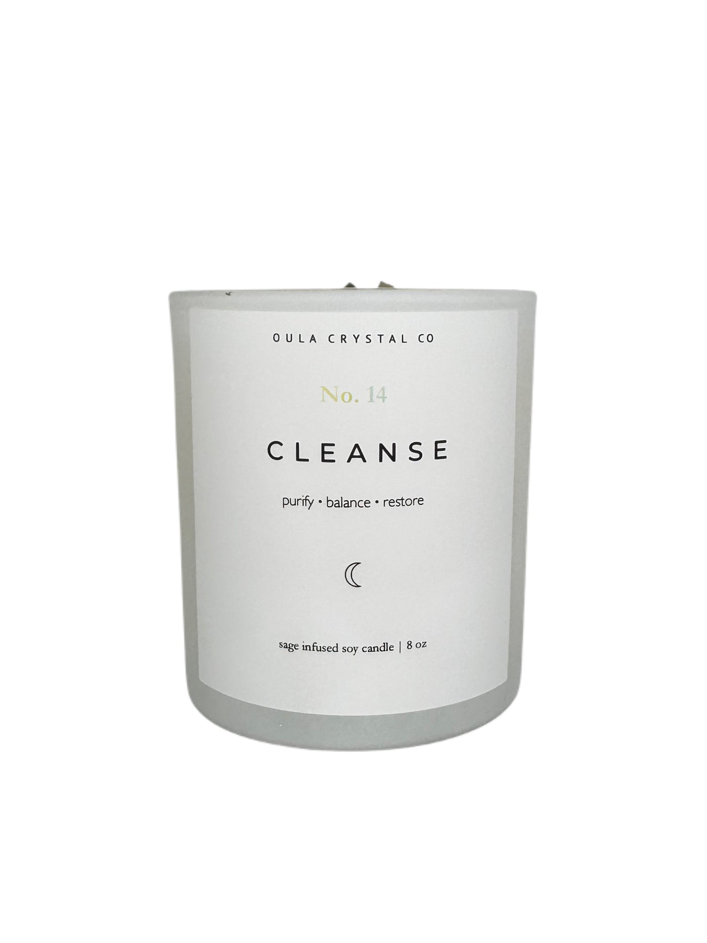 Cleanse Sage Infused Candle 8oz soy candle infused with sage leaves. Let this candle fill your space with the calming aroma of sage that creates an atmosphere of enchantment & bliss. Allow the powerful purifying properties of sage remove all negativity from your surroundings leaving you feeling refreshed, balanced, & at peace.
