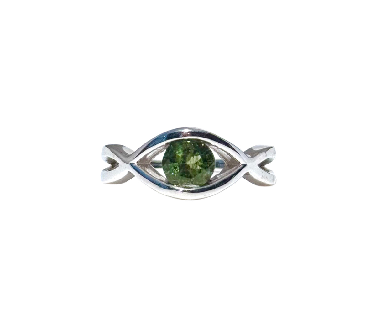Sterling Silver Moldavite Eye Ring – Tarnish-Free .925 Silver