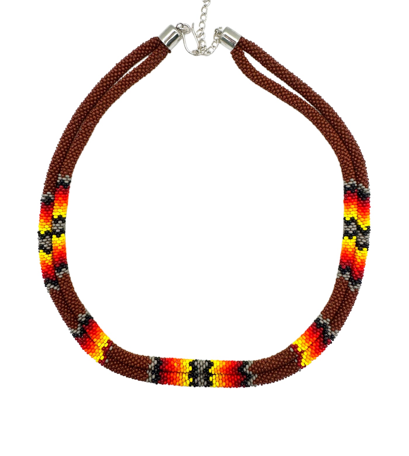 Native American Brown Double Rope Necklace is a stunning piece of jewelry that showcases the rich heritage and craftmanship of Native American culture. Handmade with premium Czech seed beads, ensuring they keep there vibrant color and long lasting durability. Measuring 16-17 inches in length.