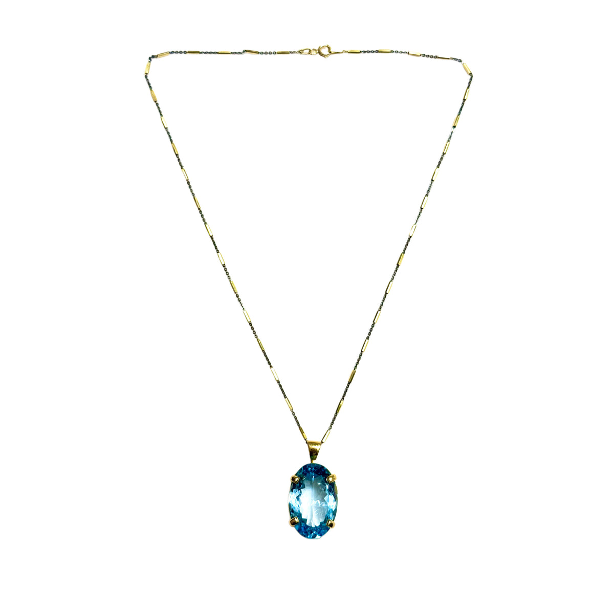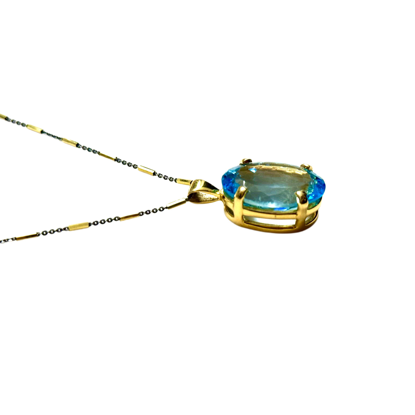This stunning necklace features a Grade AAA oval-cut Blue Topaz gemstone, beautifully faceted to reflect brilliant shades of luminous blue with every movement. The gemstone is set in a 925 sterling silver pendant finished with rich 18K gold plating, creating a refined balance of brilliance and sophistication.