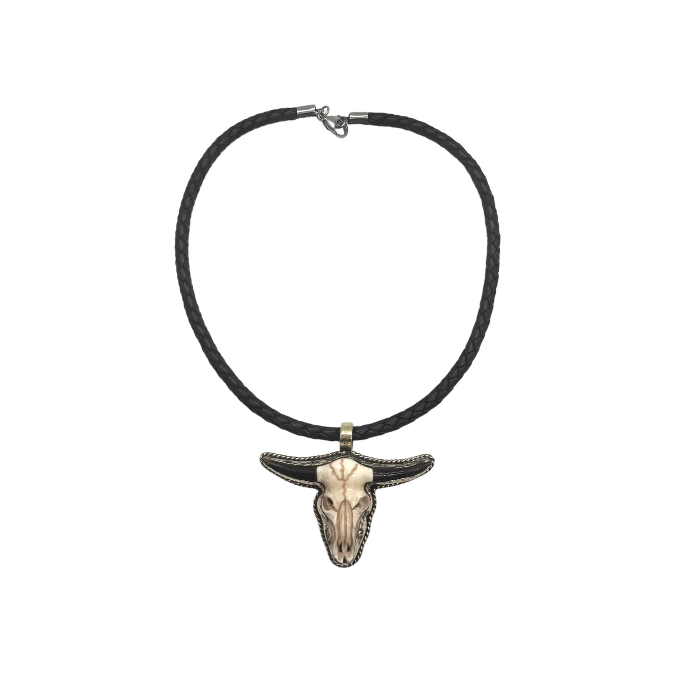 Cow Skull Necklace made with Black Leather 5mm cord that comes in 16 inch in length and 18 inches in length. 63