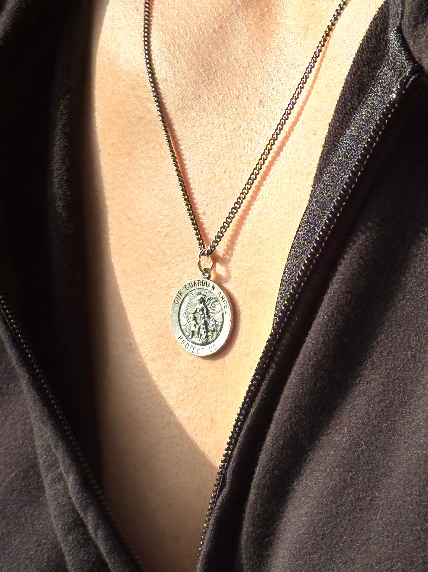 The Guardian Angel “Protect Us” Necklace embodies divine strength and spiritual reassurance, a timeless reminder that you are never alone on your path. Crafted from solid 925 sterling silver and finished in your choice of oxidized tones, this medal reflects both devotion and resilience.