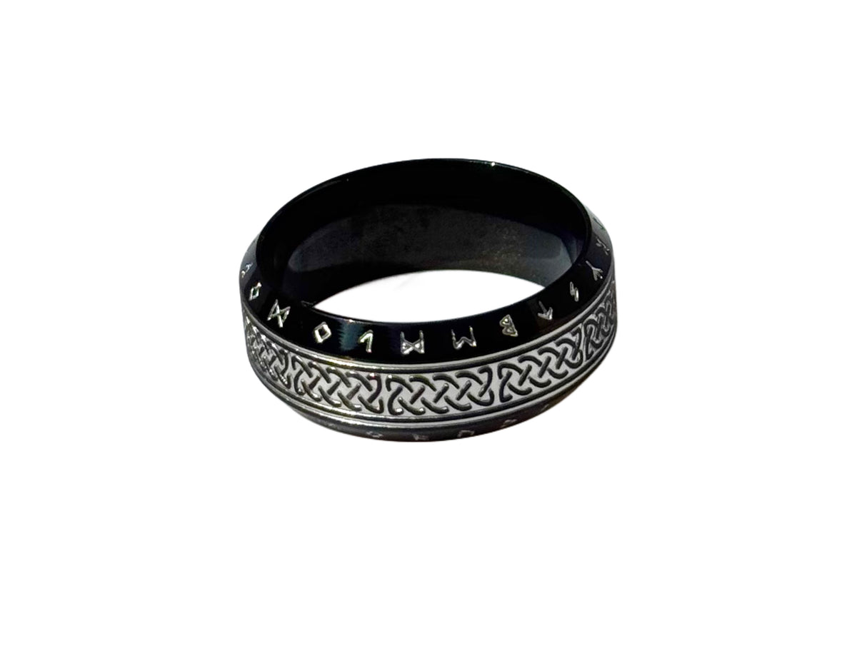 Blk & White Viking Rune Celtic Knot Ring- Sleek, strong, and built to last! This Titanium Steel Ring is crafted from premium 316 stainless steel, known for its durability and resistance to tarnish. Featuring a high-polish finish achieved through vacuum electroplating and expert manual polishing, this ring delivers a bold shine and smooth feel that stands out. Hypoallergenic and lead-free, it's safe for everyday wear and gentle on the skin. Whether worn solo or stacked, this ring is a timeless piece with a modern edge.