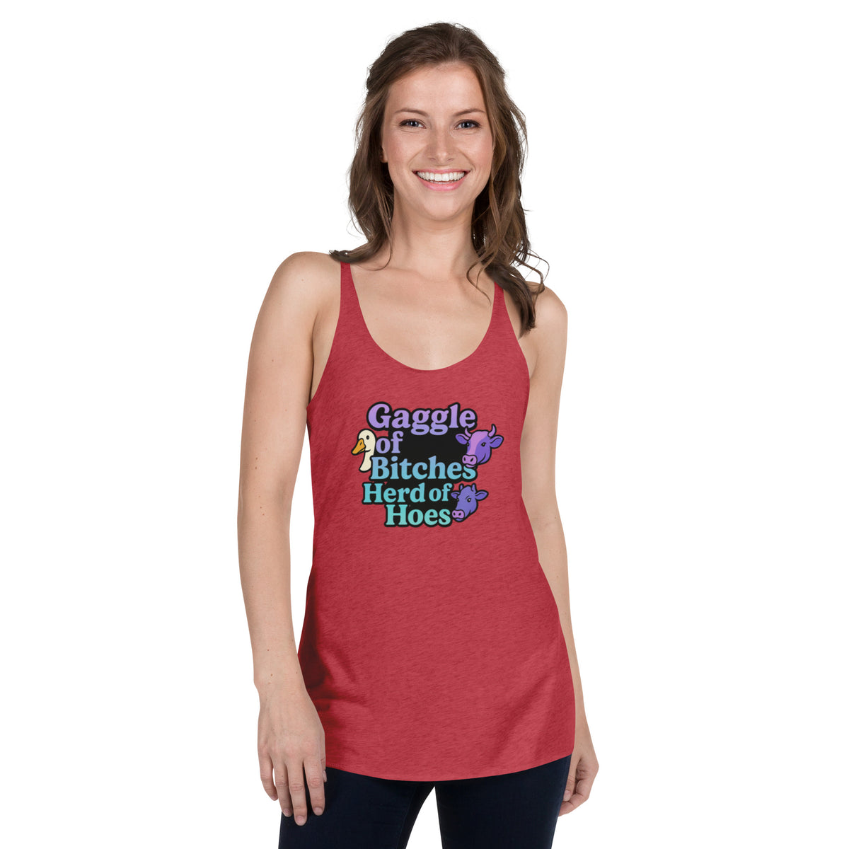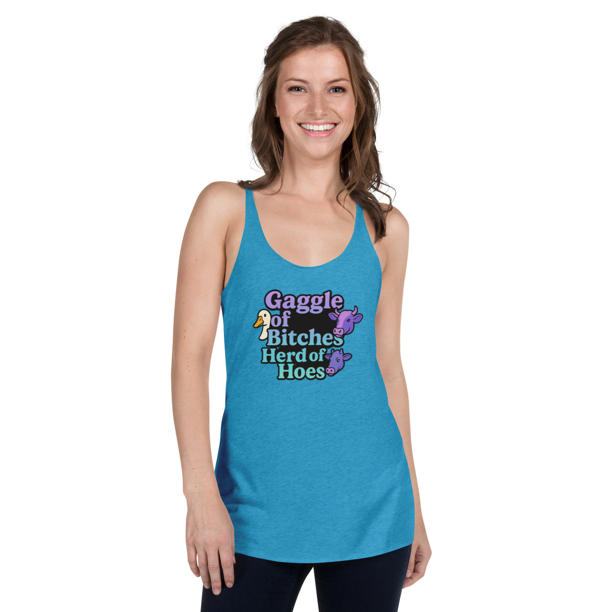 This racerback tank is soft, lightweight, and form-fitting with a flattering cut and raw edge seams for an edgy touch.