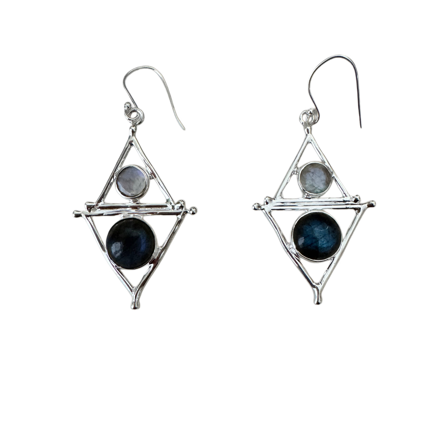 Mystic Element Earrings – Enlightening Labradorite & Moonstone | Sterling Silver Hooks